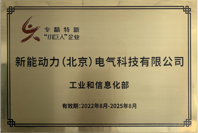 新能動力繼2020年10月入選“專精特新”中小企業(yè),2022年2月進階北京市專精特新“小巨人”企業(yè)后,于2022年8月再次進階國家級專精特新“小巨人”。
